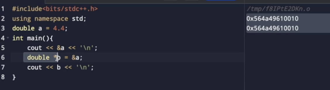 앰퍼샌드(&)로 주소를 할당할 수 있고, 타입은 주소를 할당하려고 하는 변수의 타입명과 일치해야한다.