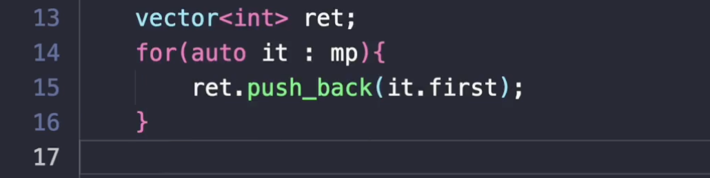 새로운 배열인 ret에다가 값을 집어넣을 거예요. first는 Key고, second는 Value죠.