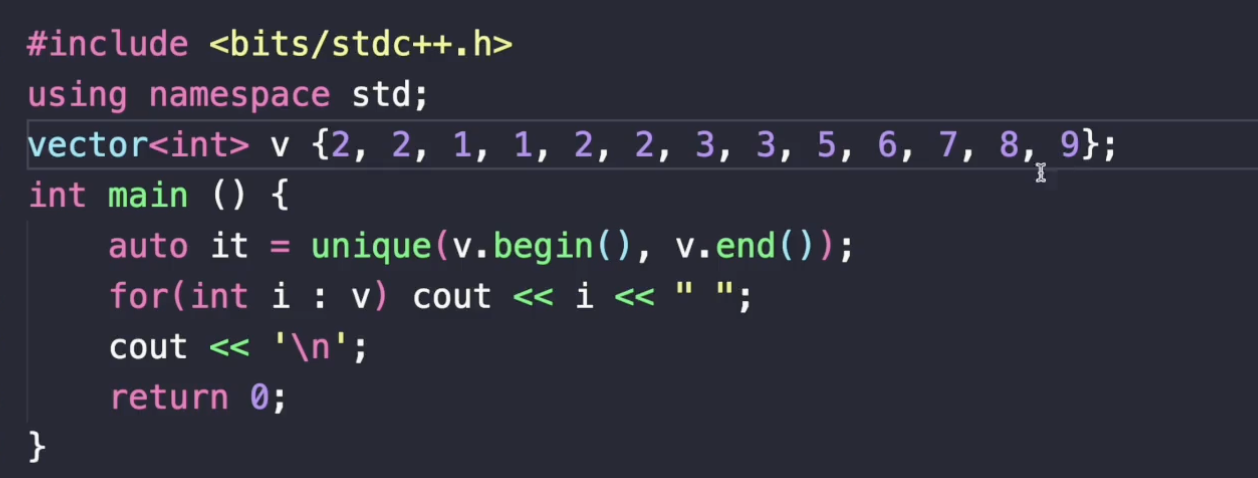 즉, unique()는 중복되지 않은 배열을 채우고 난 다음의 위치를 반환하는 거죠.